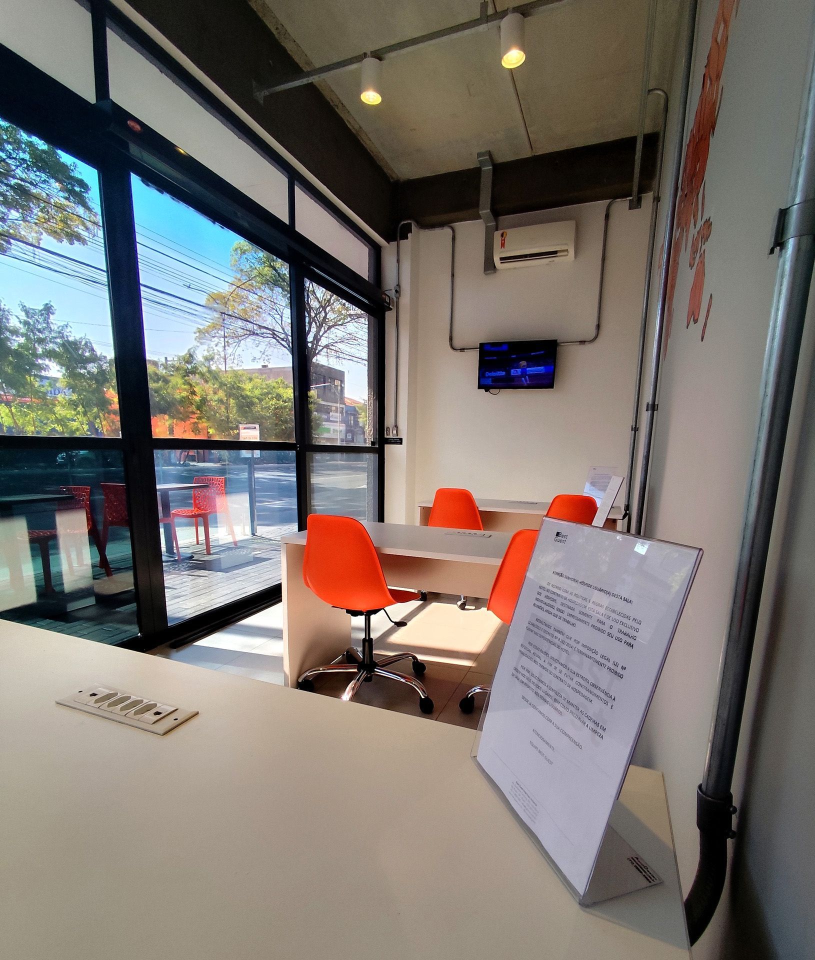 O Best Guest Hotel oferece facilidades pensadas para quem busca praticidade. O Business Center é ideal para reuniões produtivas, com capacidade para até 6 pessoas, Wi-Fi, mesas e cadeiras confortáveis e televisão para apresentações. Para maior comodidade, os hóspedes contam também com uma estação de passar roupa, equipada com ferro, tábua e tomadas acessíveis, garantindo privacidade e conforto. No piso térreo, ao lado da recepção, está a Estação de Conveniência 24 horas, com lanches, bebidas quentes e geladas e refeições rápidas, com consumo pago diretamente na recepção. O hotel dispõe ainda de estacionamento pago com manobrista, com capacidade máxima para veículos do porte SUV, não sendo permitido o acesso de vans ou ônibus.